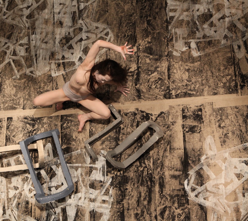 Au son de la voix et des instruments de Violaine Lochu, au milieu des peintures et sculptures de Bernard Bousquet qui se tournent et se retournent, Maki Watanabé nous entraîne vers un corps autre ; sidéré ou en mouvement, le corps qu’elle désigne nous renvoie vers nos plus lointaines origines et puise son énergie dans la nuit des temps.