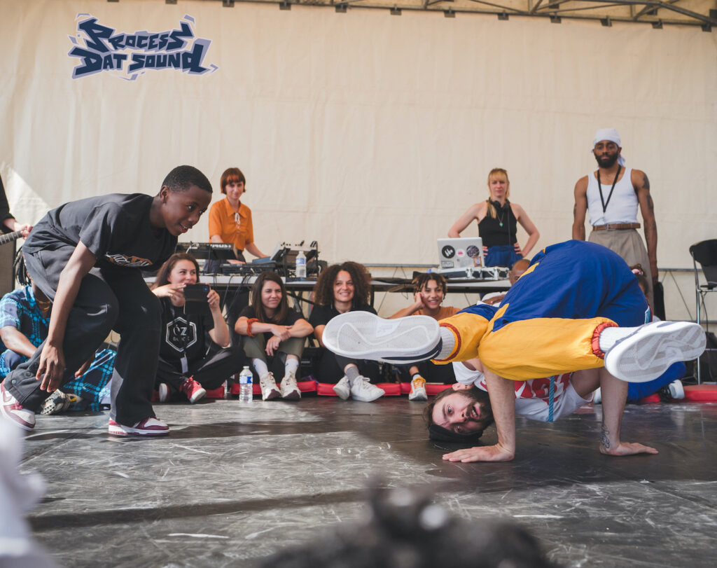 Le Battle Process Dat Sound fusionne hip hop all styles et musiques improvisées pour créer une expérience explosive. Ici, pas de simples battles : danseurs/es et musicien/nes se connectent sur scène, poussant la créativité et l’énergie live à son paroxysme. Avec un speaker de légende, des musicien-nes de haut niveau et des danseurs-ses invités de qualité, ce battle est bien plus qu’un spectacle – c’est un terrain de jeu où tout peut arriver.