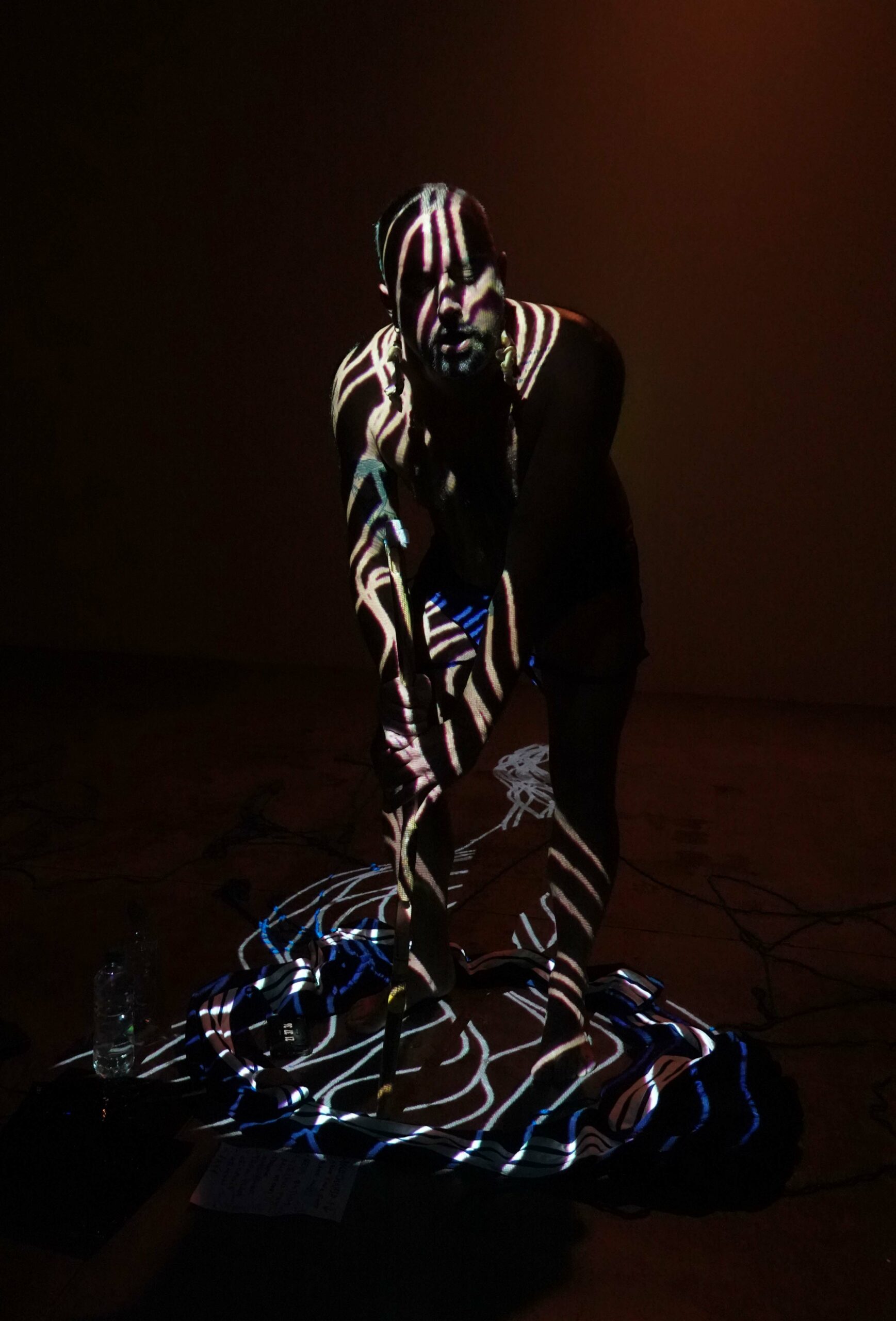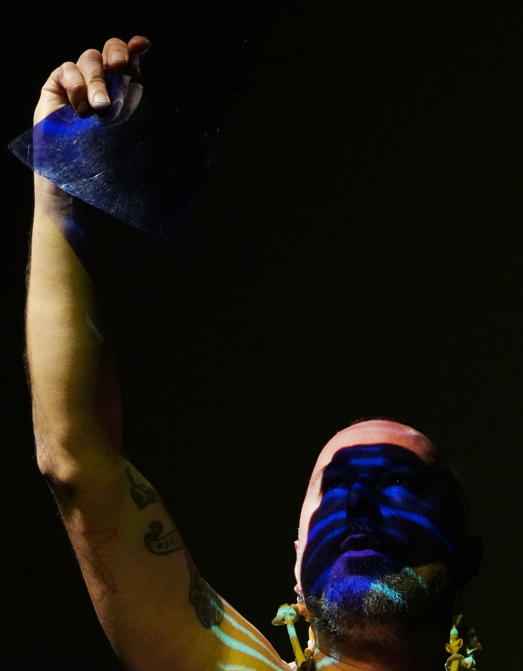 SSSSS cherche à provoquer un changement fondamental : la perte de l’ancrage humain, de la stabilité, de l’équilibre et d’un point de vue terrestre. Un parallèle se crée entre la bouche et l’espace de performance qu’elle habite, se transformant à chaque fois, les sons émis émergeant à la fois de l’intérieur et de l’extérieur du corps.